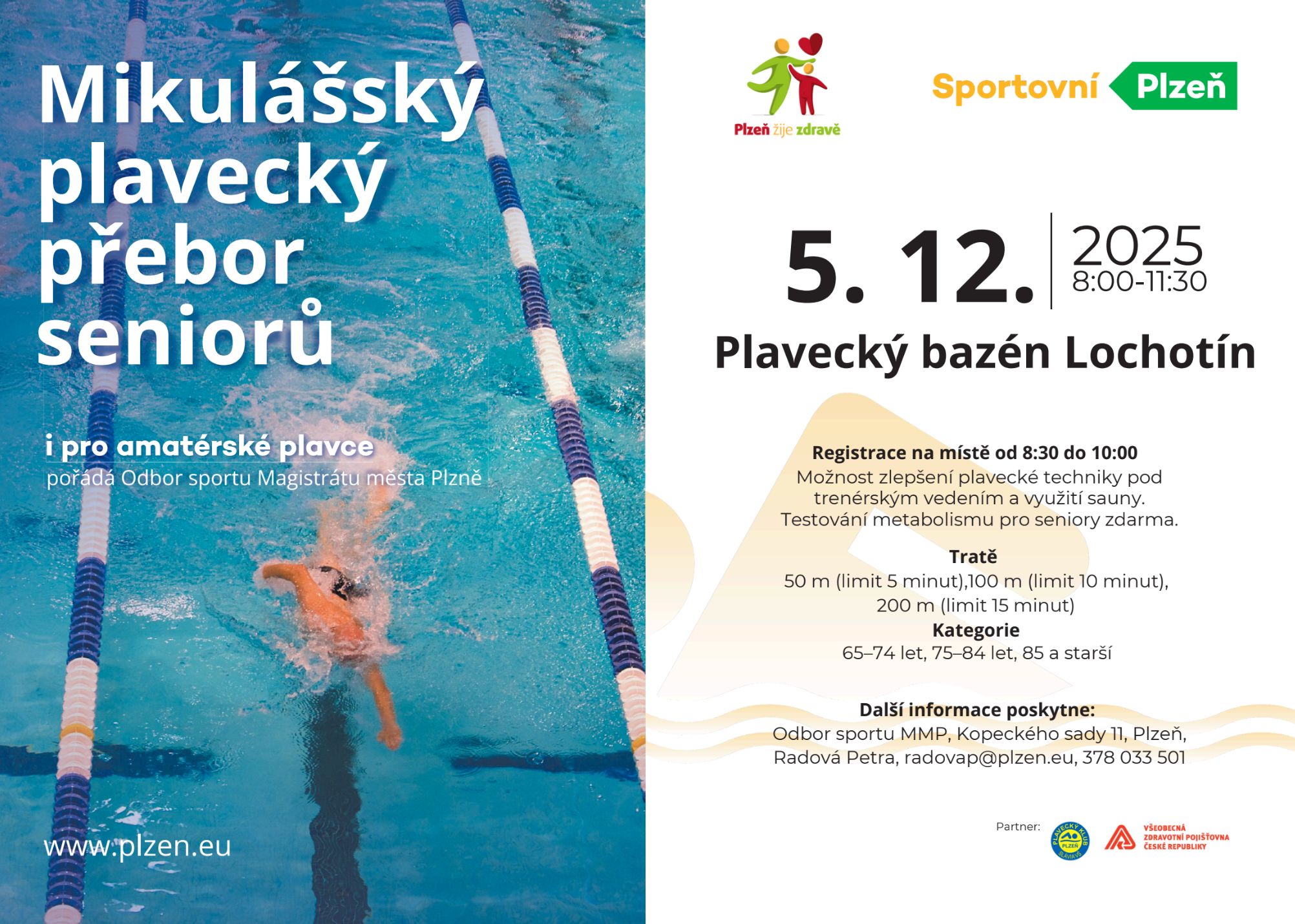 Odbor sportu MMP pořádá již tradiční Mikulášský plavecký přebor seniorů. Letošní ročník proběhne v plaveckém areálu města Plzně na Lochotíně.